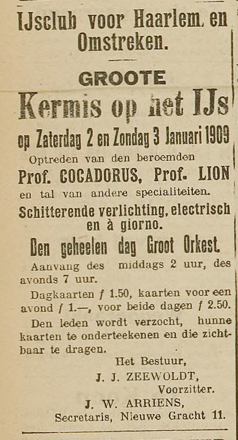 In november 1909 bedankten Suringar en Arriëns, wegens drukke werkzaamheden, voor hun bestuursfuncties in de ijsclub 'Haarlem en Omstreken'. Ook voorzitter Zeewoldt trad af. Hij werd benoemd tot erelid.