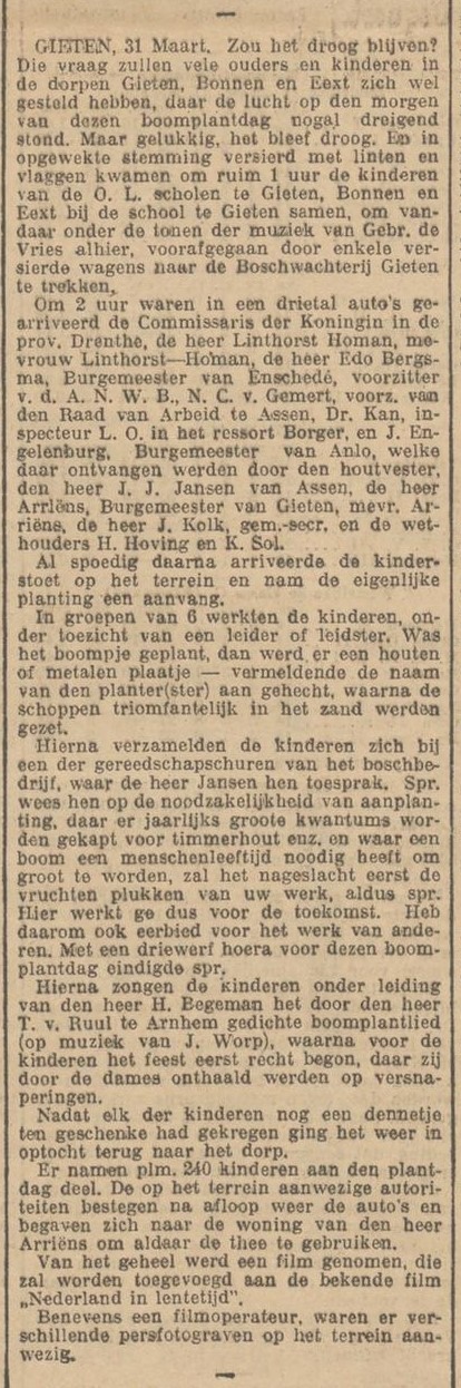 31 maart 1925 was er een boomplantdag. Het was een feestdag waarop de schooljeugd bomen plantten in het Staatsbos. Er zijn veel foto's van, maar helaas maar eentje van Wim en zijn vrouw. Er was wel bewegend beeld van Wim in het bioscoopjournaal!