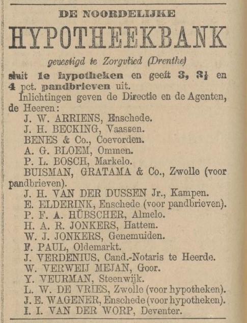 Eigenaren: J.M. Polman Mooij 1897 - 1908, J.J. Zeewoldt jr. 1908 - 1910, de Ned. Credietbank N.V. 1910- 1926.