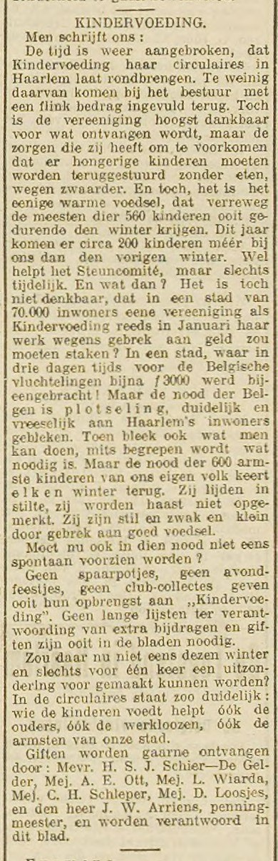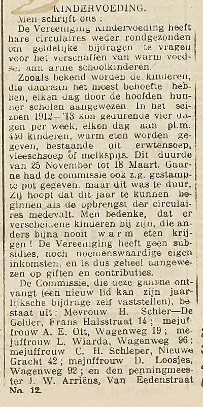 Wim is nog steeds penningmeester van de Vereeniging Kindervoeding. Vier dagen in de week kregen 500 behoeftige schoolkinderen een warme maaltijd.