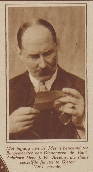Bij Koninklijk besluit van 18 december 1916 werd J. W. Arriëns benoemd tot burgemeester van Gieten.