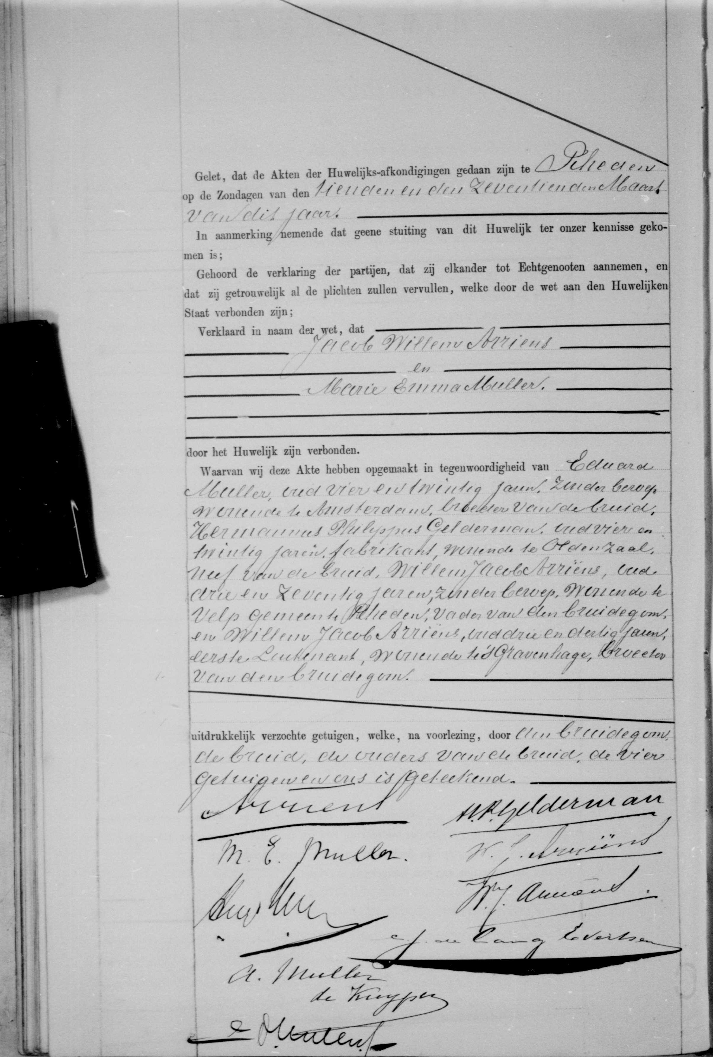 1 juni 1915 werd de echtscheiding uitgesproken tussen Wim Arriëns en Marie Emma Muller.