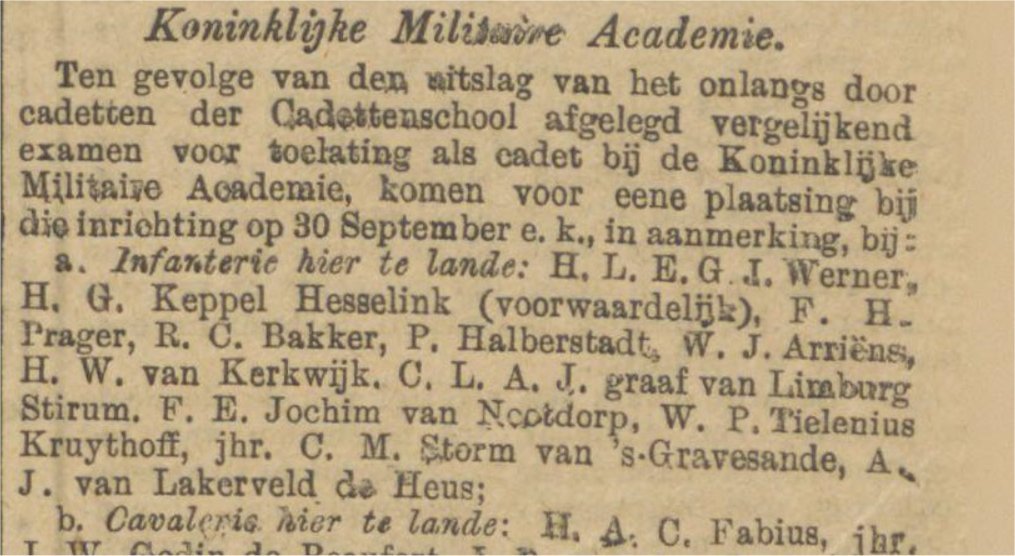 Tweelingbroer Willem Jacob trad in de voetsporen van zijn vader en werd in augustus 1896 toegelaten als cadet bij de Koninklijke Militaire Academie.