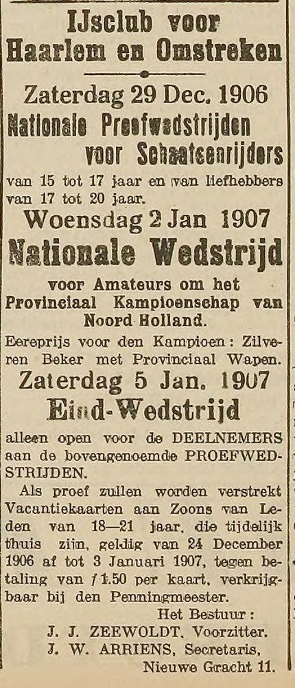 Wim was secretaris van de IJsclub Haarem en omstreken. J.J Zeewoldt was commissaris van de Nederlandsche Credietbank. Johan werd in november 1907 bestuurslid.