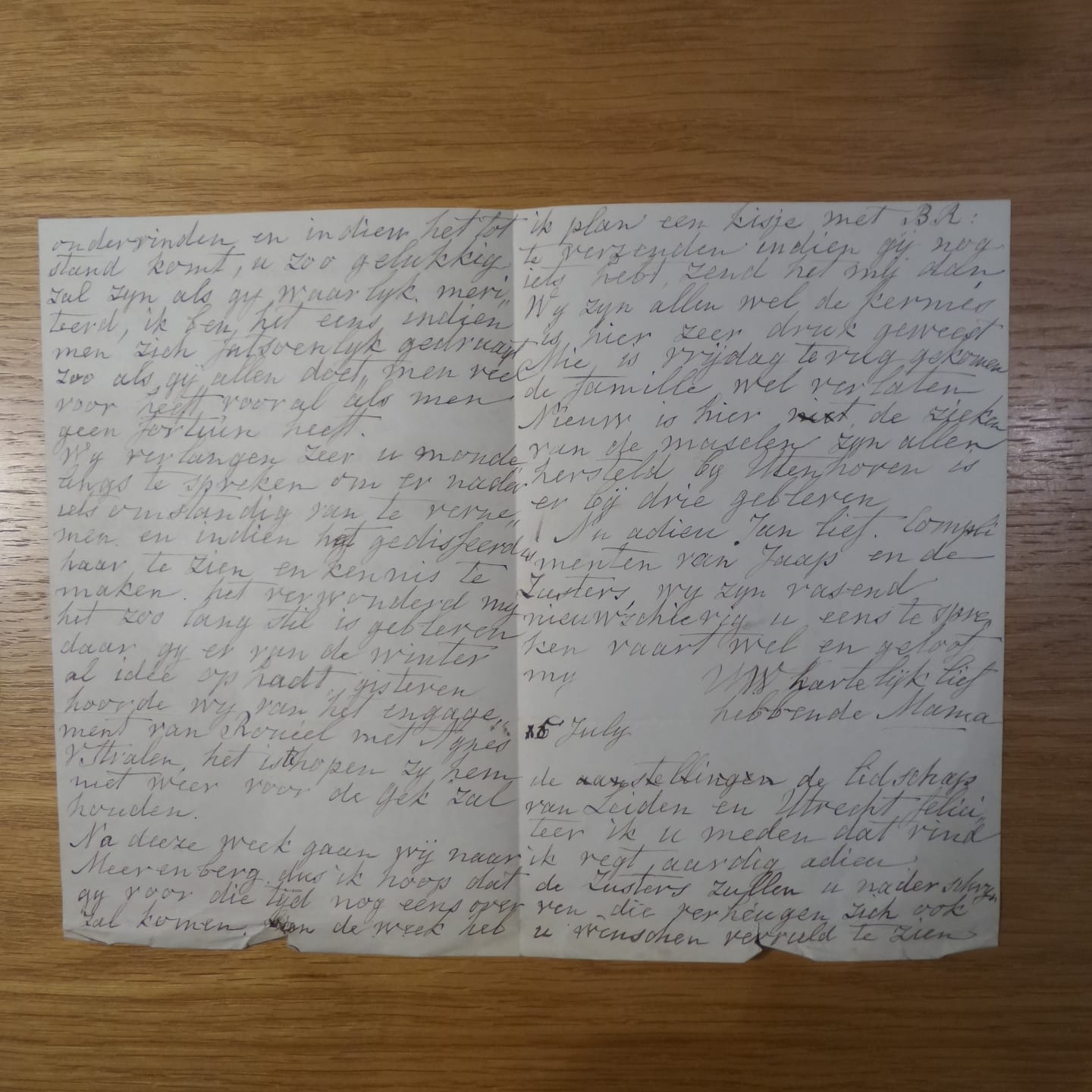 nieuwschierig u eens te spreken vaart wel en geloof mij uw hartelijk lief hebbende mama 25 julij