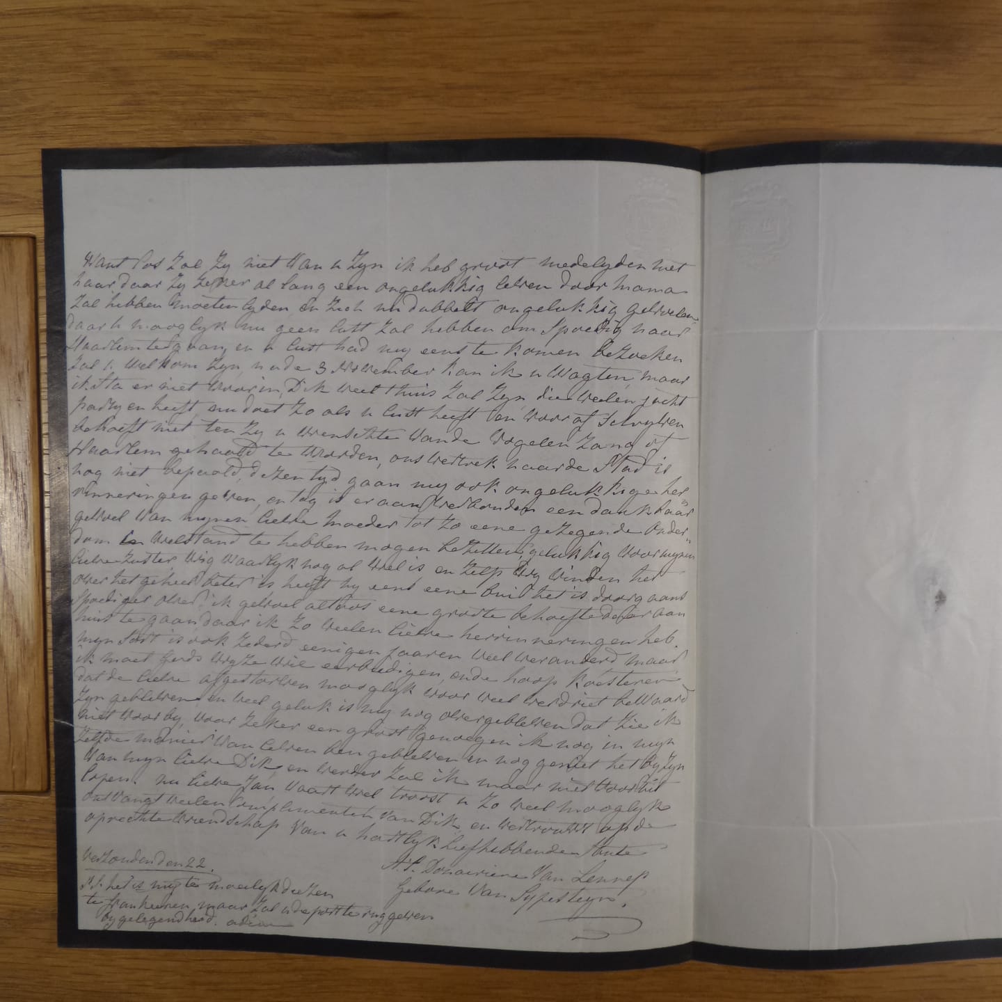 7 oktober 1851. Laatste verjaardagsbrief van mama. In augustus van dat jaar was het kind van Ascanius en Jeanne in Haarlem geboren.