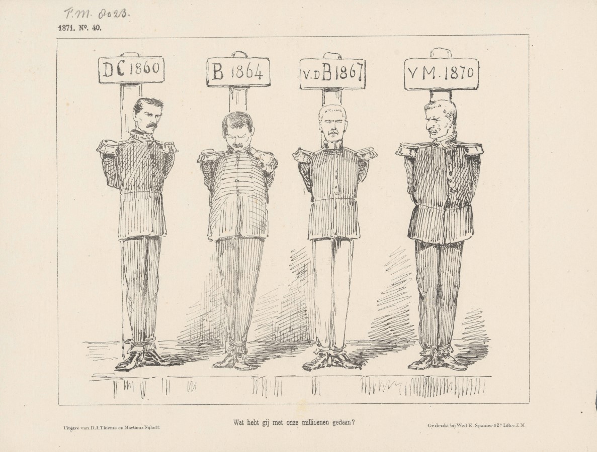 Er zijn maar twee afbeeldingen van Johan Wilhelm Blanken bekend. Twee spotprenten uit zijn tijd als Minister van Oorlog in het Kabinet-Thorbecke II.
