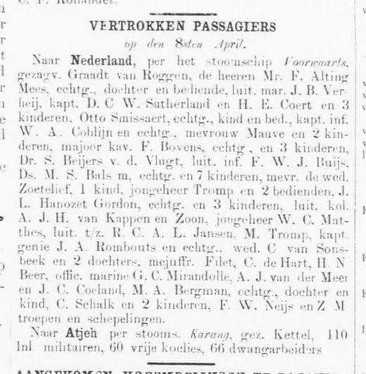 - Willem, geb. Groningen 28 Nov. 1855, overl. op 30 Nov. 1883 te Port-Said, hij was toen tweede-luitenant bij het N.- I. leger.