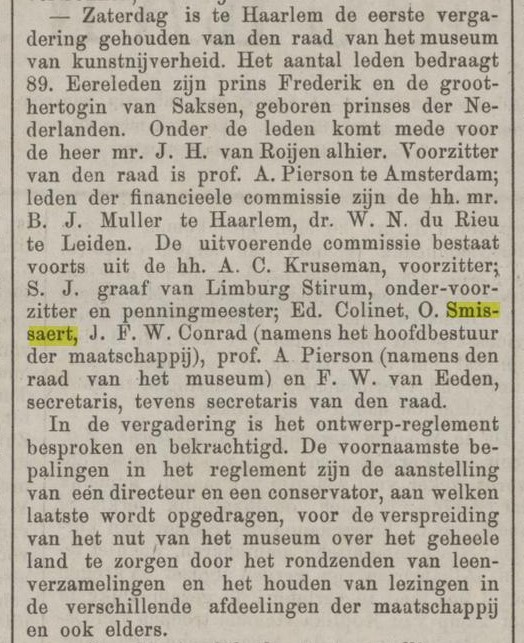 1880 - 1886 was Otto lid van de raad van bestuur van het Museum van Kunstnijverheid in Haarlem. Het museum was gevestigd in Paviljoen Welgelegen, wat Otto vast wel kende uit de verhalen over zijn opa, die daar als prefect van het paleis het heimelijke vertrek van Koning Lodewijk Napoleon had meegemaakt. Het Paviljoen was trouwens al sinds 1864 ook het Koloniaal Museum. Deze collecties vormden later de grondslag voor het in 1926 geopende Tropenmuseum in Amsterdam.
