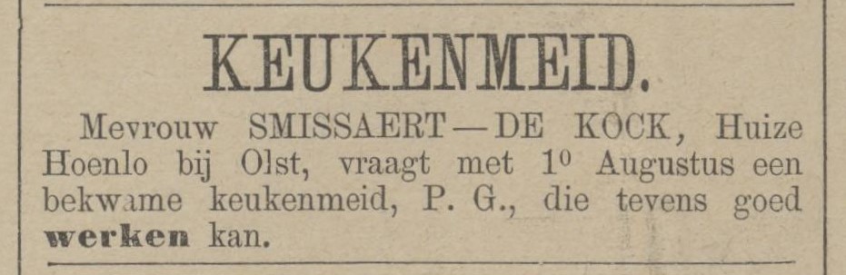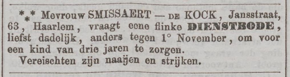 Maar het gezin Smissaert ging per 7 november 1882 verhuizen.