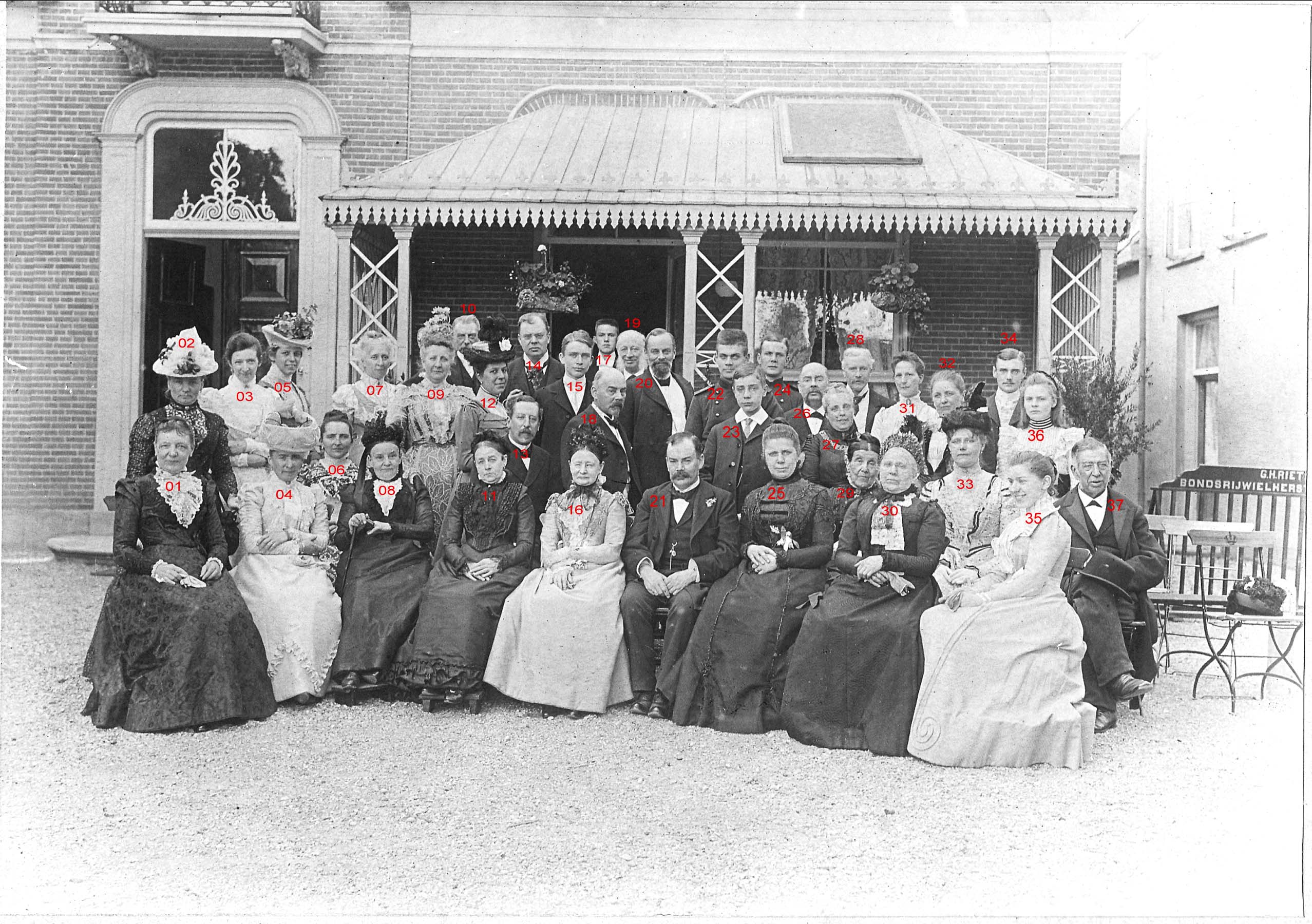 Van Maria Louise, roepnaam Louise, is een foto. Het is genomen op 4 juni 1900, op de zilveren bruiloft van Jacob Willem Hendrik Crommelin (haar broer) en Clara Wilhelmina Wilkens. Ze zitten na de maaltijd voor Hotel Röge, 't Loo (Apeldoorn).